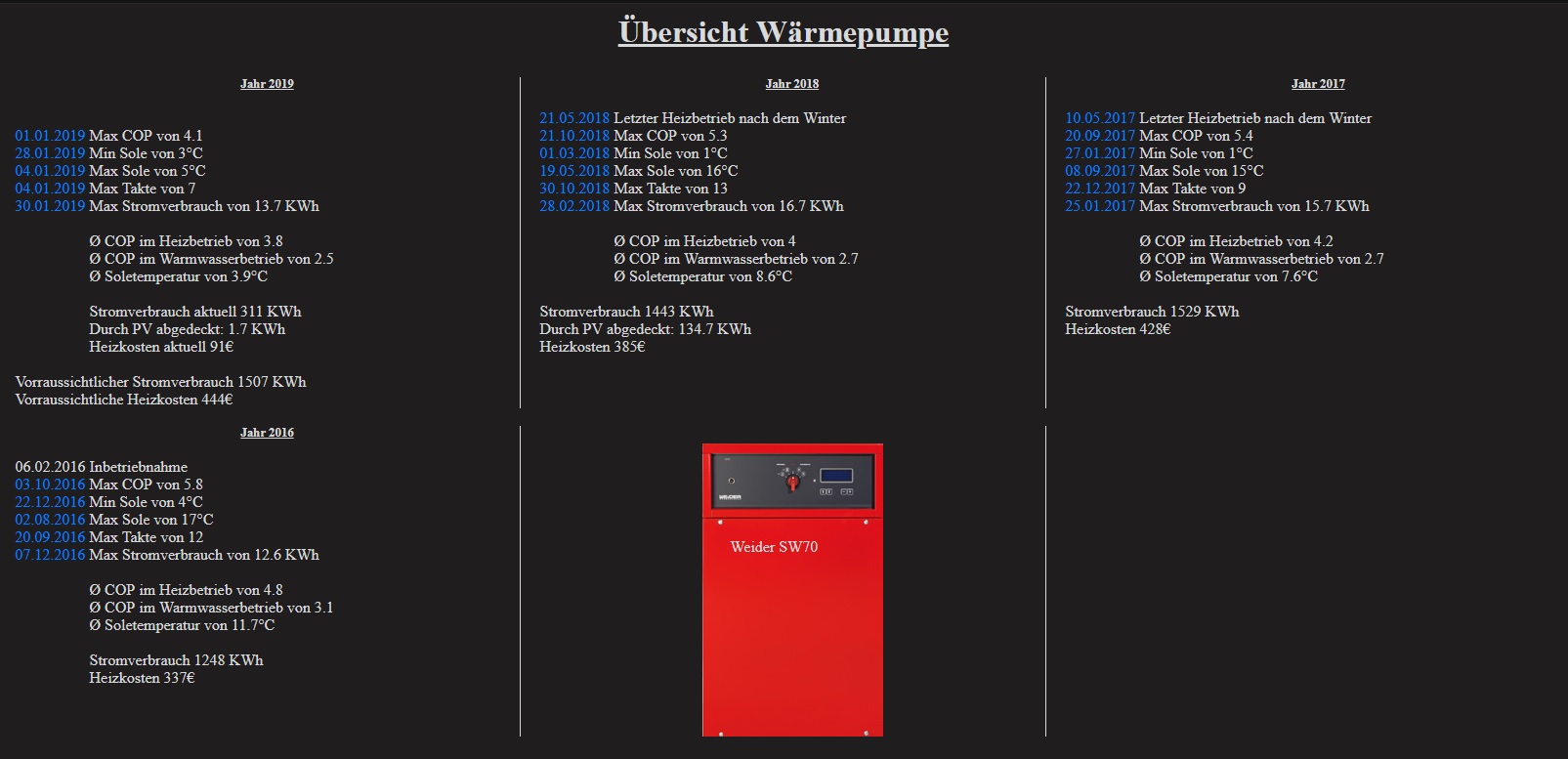 Dank der perfekten Dimensionierung liegt die Soletemperatur seit der Inbetriebnahme 2016 nie unter 0°C und der Wirkungsgrad COP konstant über 5!